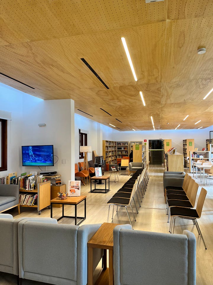 Lá fomos nós conhecer o espaço (schön!!) da biblioteca e a área externa que conta com um restaurante/bar muito legal. Escolhemos a área externa e veio daí o motivo da nossa angústia durante aquela semana. Decidimos, junto com a Patrícia, parar de sofrer à toa e fazer nosso segundo Rolê lá dentro da biblioteca que também é maravilhosa (wunderschön)!!