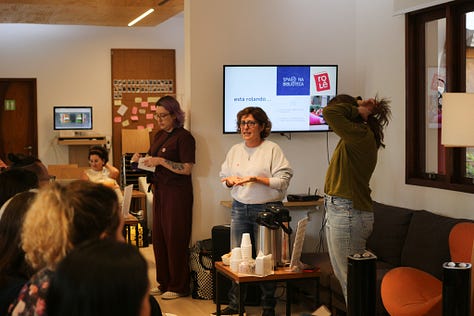 Lá dentro, as cadeiras vão sendo tomadas e, em pouco minutos, começamos nosso segundo encontro com cerca de 55 participantes, contando nós 3, nosso fotógrafo-videomaker do coração (o Juliano) e a Patrícia.